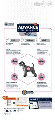A ração Advance Atopic é ideal para cães de porte médio e grande com dermatite atópica ou problemas de pele causados por intolerâncias alimentares. Consulte um médico veterinário para obter orientações sobre a utilização e as porções recomendadas.