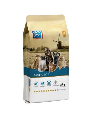 CaroCroc Cat Senior é um alimento seco super premium, especialmente formulado para as necessidades dos gatos com aproximadamente 8 anos ou mais. Os gatos idosos têm necessidades energéticas mais baixas e um metabolismo mais sensível. Assim sendo, este alimento contém menos proteína, gordura e minerais, o que reduz o esforço sobre órgãos como os rins e a bexiga. Isto contribui para uma vida saudável e plena, mesmo na velhice.