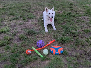 A nossa pastora branca, Cessna, testou a versão de 8 cm. Acabou por ser uma adição fantástica à sua coleção de brinquedos. O design oco cria um ressalto interessante, levando muitas vezes a bola em direções inesperadas. Isso tornou o jogo desafiante e emocionante, embora quase a tenhamos perdido na água por causa desse mesmo ressalto!