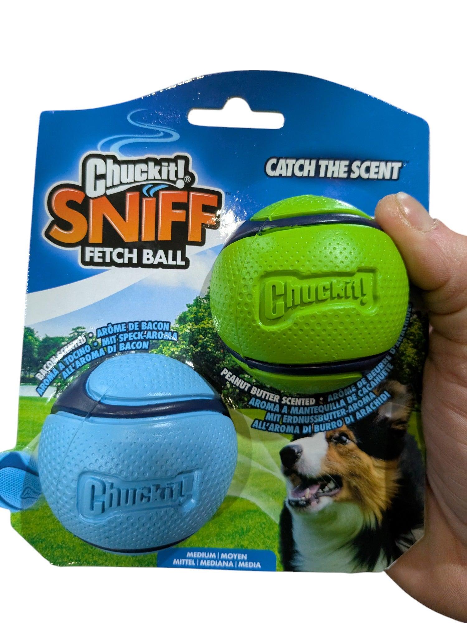 Conjunto de Bolas de Busca Chuckit Sniff Fetch – Bolas de Busca com Aroma de Manteiga de Amendoim e Bacon – 6cm (2 unidades)