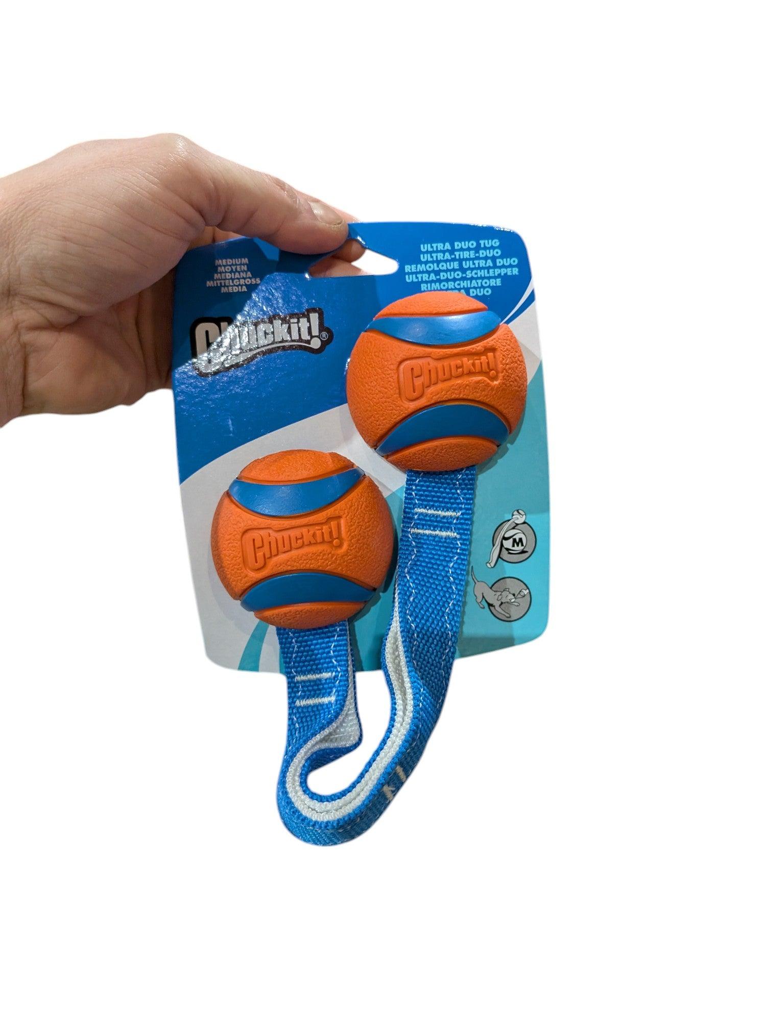 O Chuckit Ultra Duo Tug é o brinquedo interativo perfeito para cães que adoram ir buscar, puxar e brincar. O seu design exclusivo combina duas bolas Chuckit Ultra resistentes, ligadas por uma corda forte, permitindo diversas brincadeiras.