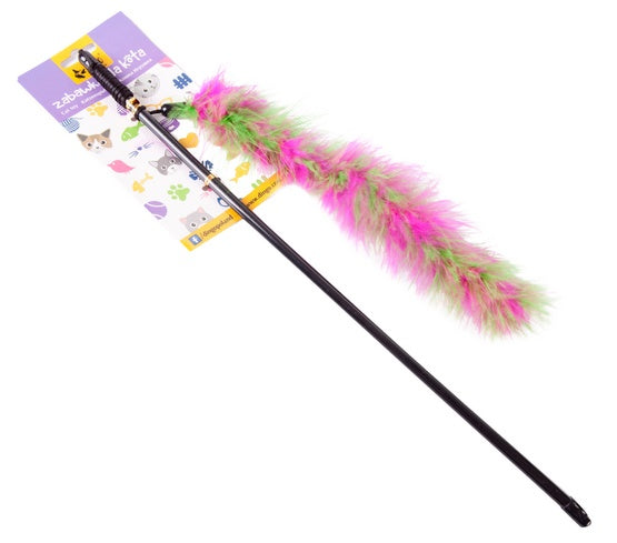 Dingo Wędka dla kota - ogonek z piór różowo-zielony
