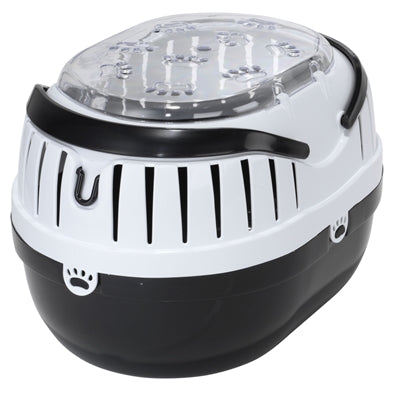 O cesto de transporte Ebi Paw em preto carvão (35x25x25 cm) é uma prática caixa de transporte para levar roedores, por exemplo, ao veterinário. O cesto, também chamado de caixa de transporte, possui uma tampa transparente com orifícios de ventilação em forma de patas. A caixa tem pegas para facilitar o transporte.