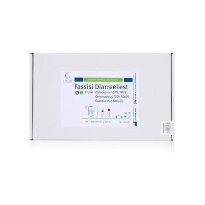 O teste rápido triplo da Fassisi é um teste imunocromatográfico para a deteção domiciliária de três causas comuns de diarreia em cães e gatos: Giardia duodenalis, parvovírus e coronavírus. Com um único teste, pode determinar imediatamente se algum destes agentes patogénicos está presente nas fezes do seu animal de estimação.