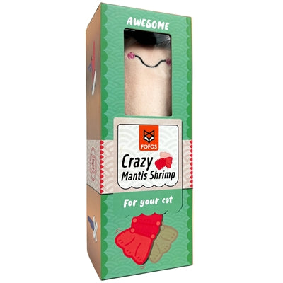 O camarão-louva-a-deus Fofos Crazy Mantis Shrimp de 30x8x8 cm é um divertido brinquedo para gatos com diversas texturas. Este alegre camarão da Fofos vai rapidamente tornar-se o companheiro de brincadeiras favorito do seu gato! O camarão move-se sozinho e é recarregável (cabo de carregamento incluído). As diferentes texturas tornam-no um brinquedo interessante. As cores suaves e o rosto adorável completam o look.