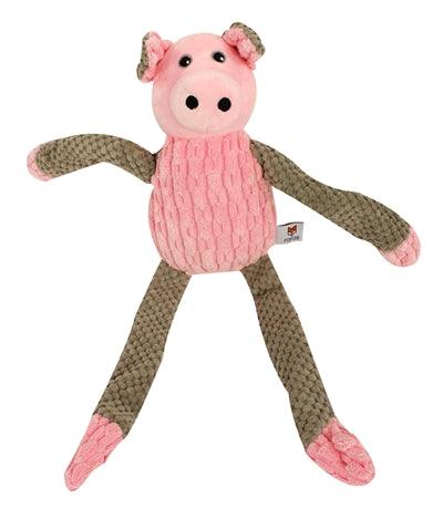 O Porquinho de Pernas Longas da Fofos é um peluche versátil, perfeito para cães que adoram abraçar e brincar ativamente. Este adorável porquinho é feito com uma variedade de tecidos texturizados, o que o torna ainda mais atraente. Os seus longos braços são recheados com corda, ideal para brincadeiras de cabo de guerra, enquanto as suas pernas são recheadas com guizos de papel para ainda mais diversão. O guizo na barriga torna o brinquedo ainda mais envolvente e estimula os instintos brincalhões do seu cão. Além disso, o porquinho tem um rosto cosido e seguro, evitando que partes soltas sejam puxadas e engolidas.