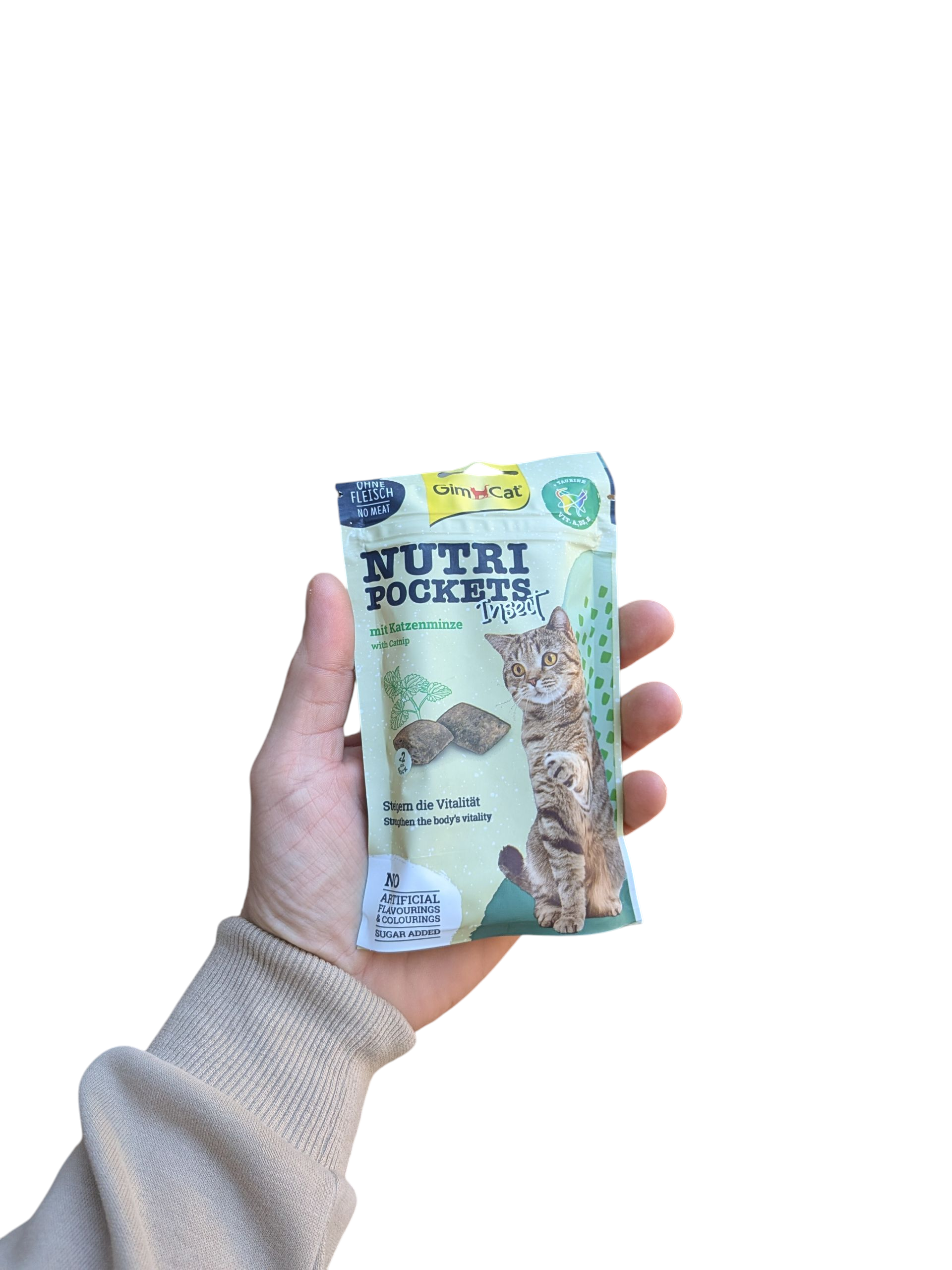 Gimcat Nutri Pockets Inseto e Catnip são um snack saboroso e saudável para o seu gato. Estas embalagens crocantes são recheadas com um delicioso creme contendo proteína de insetos e catnip.