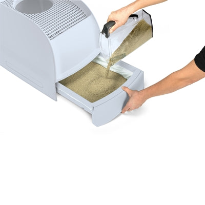 A entrada desta caixa de areia é na parte superior, impedindo a entrada de cães. Graças aos orifícios inovadores na tampa, a areia cai de volta para a caixa quando o gato sai, reduzindo a quantidade de areia espalhada. A bandeja amovível facilita e agiliza a limpeza, deixando-o com mais tempo para desfrutar do seu animal de estimação.