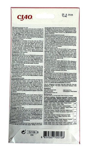 O snack cremoso Inaba Churu Atum/Salmão 4x14 gramas é isento de cereais e rico em humidade. Os gatos costumam beber pouca água, o que pode levar à desidratação. Por isso, ofereça ao seu gato este irresistível snack Churu! Este delicioso petisco é feito com um creme húmido e vem em saquetas individuais. Os gatos adoram a textura cremosa! Esta deliciosa receita é isenta de cereais e contém vitamina E. Sem conservantes artificiais!