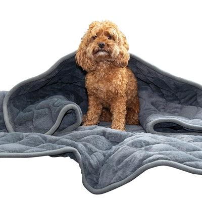 - Cobertor ponderado para cães, proporcionando uma sensação reconfortante.