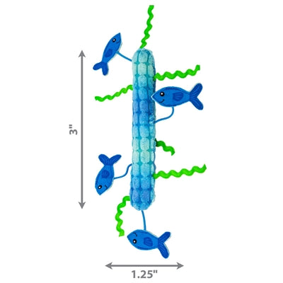 O Kong Kickeroo Stickeroo, com som de papel amachucado e catnip azul (26x11x2 cm), é um brinquedo para gatos com catnip e sons de papel amachucado em formato alongado. O Kickeroo Stickeroo da Kong é o brinquedo de sonho de qualquer gato. O som do papel amarrotado atrai a atenção do gato e o formato alongado convida-o a brincar com o brinquedo utilizando todo o corpo. Os peixes e as algas marinhas em relevo despertam o instinto de caça do gato. O catnip no brinquedo torna a diversão ainda maior!