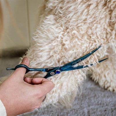 A tesoura curva Mikki Doodle de 19 cm é ideal para aparar o pelo do seu Doodle em casa. Aparar regularmente evita nós e mantém o seu animal limpo. Com esta tesoura curva da Mikki, também pode fazê-lo em casa! Ela é perfeita para criar um formato bonito na pelagem. Escove bem a pelagem antes de começar e dê pausas ao seu animal durante a tosquia para evitar desconforto.