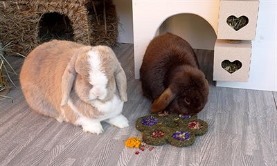Composição: Placas de fibra de celulose comestíveis, feno de prado, centáurea, pétalas de rosa, calêndula.
