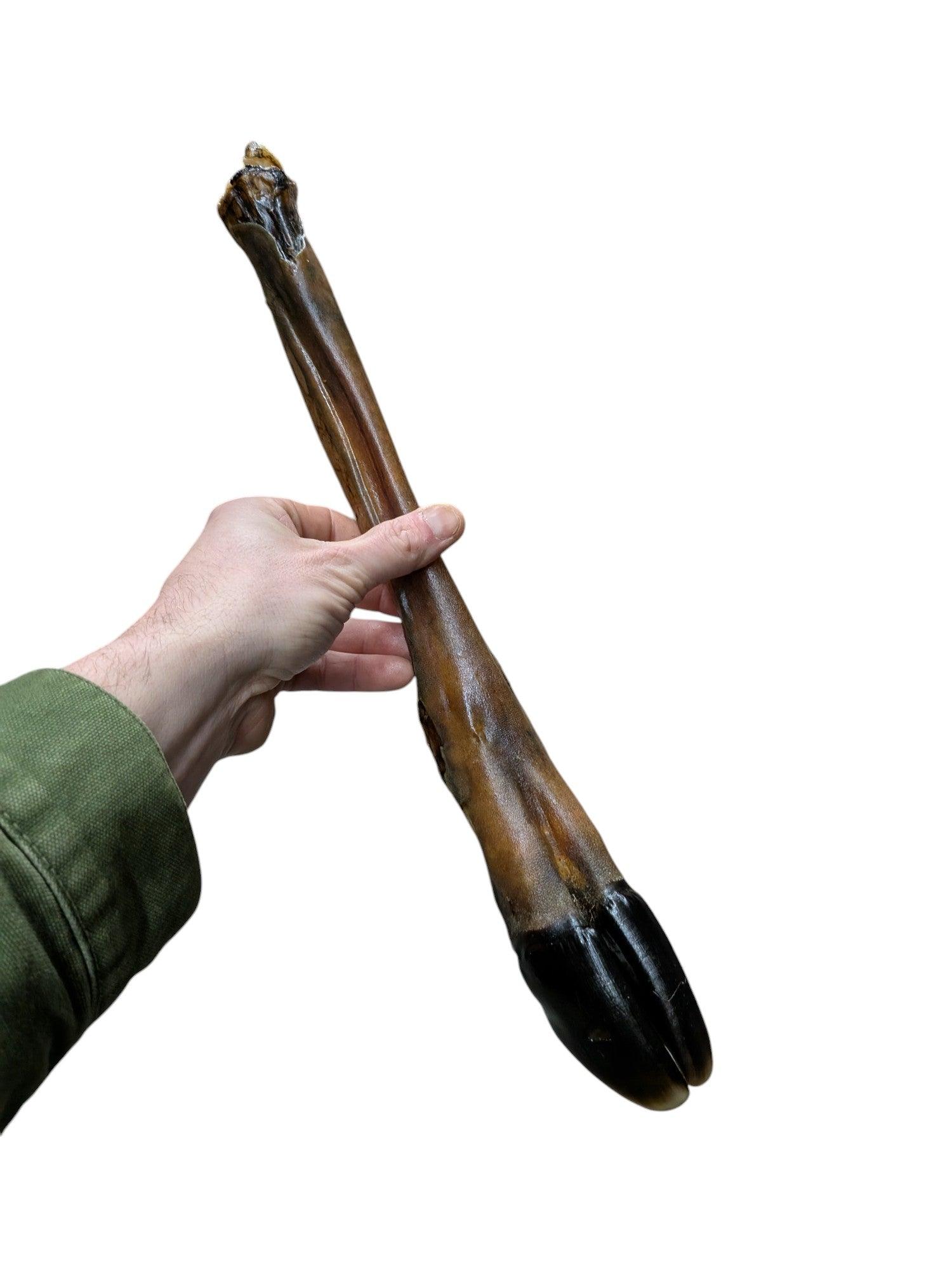 Cada embalagem contém uma perna de veado . Este é um produto grande e duro, especialmente indicado para cães de porte médio e grande com uma forte necessidade de roer.