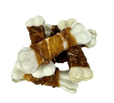 Cada embalagem contém 20 ossos prensados, cada um com 10 cm de comprimento. O peso total da embalagem é de aproximadamente 680 gramas. Isto torna o produto adequado para ser utilizado como recompensa ou petisco durante vários dias ou semanas.