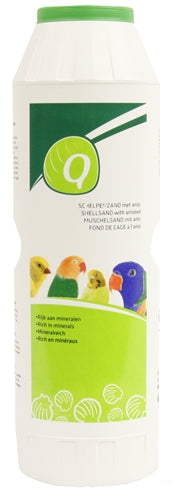 As cascas presentes neste produto ajudam a sua ave a triturar e digerir as sementes. A Areia de Conchas Q contém também grãos de casca de ostra, uma fonte de minerais e cálcio, que promovem o crescimento saudável das penas e ossos fortes. A areia é livre de pó e poeira. O aroma a anis adicionado à Areia de Conchas Q proporciona também um perfume refrescante à sua sala de estar.