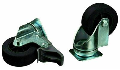Conteúdo do conjunto: 2 rodas dianteiras (giratórias, com travão) e 2 rodas traseiras (fixas)