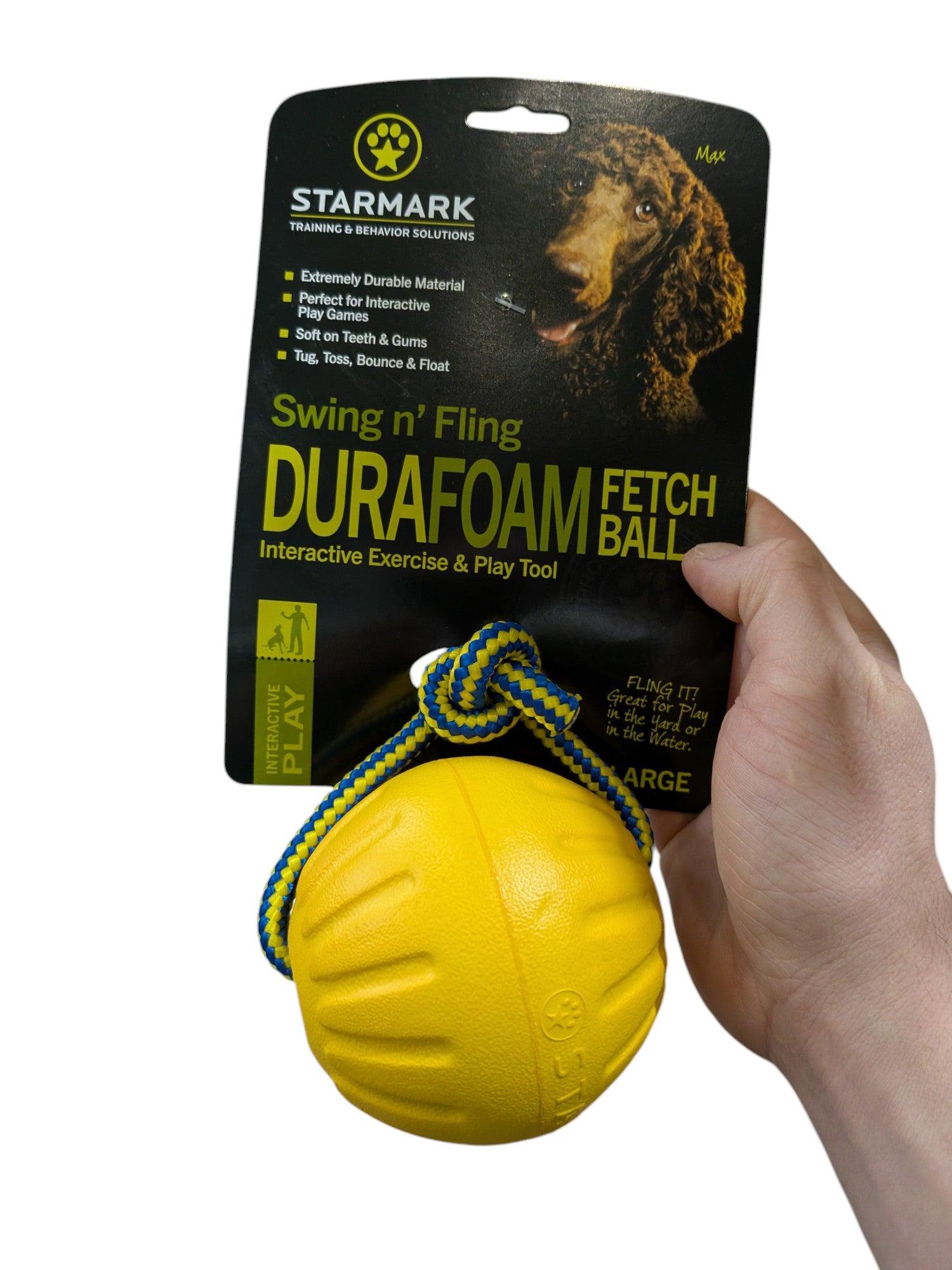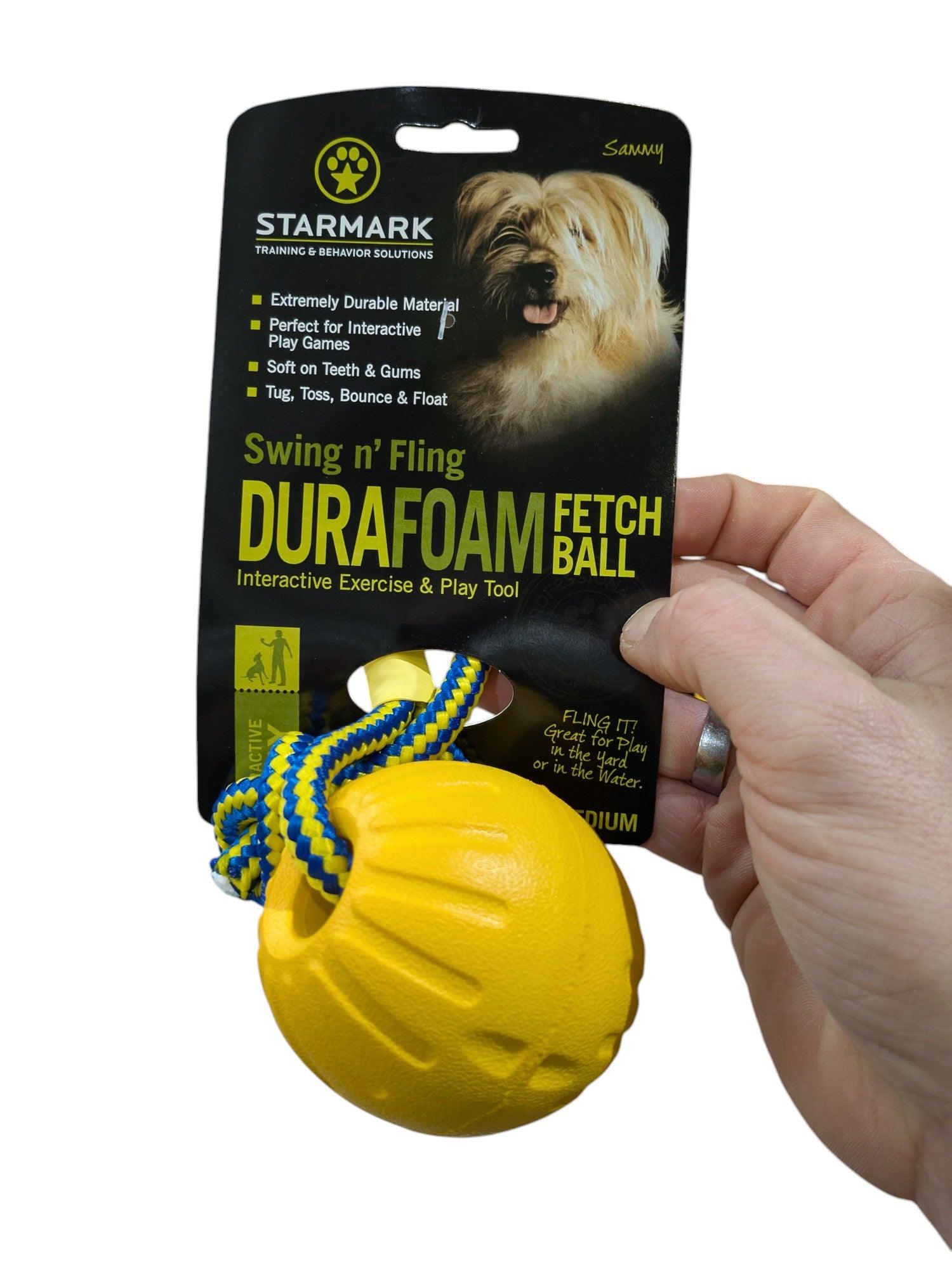 Bola de espuma resistente Starmark Swing 'N Fling com corda - Virtualmente indestrutível