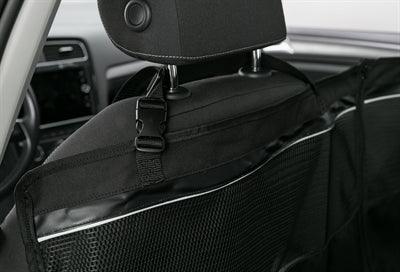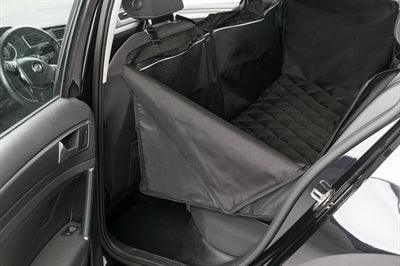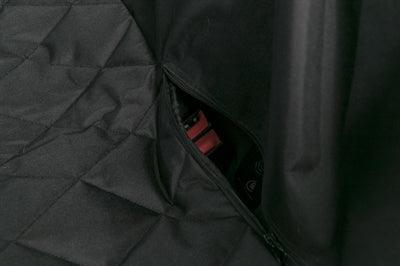 Com pegas práticas, pode fixar facilmente a manta aos encostos de cabeça dos bancos dianteiros e traseiros. As laterais altas protegem as portas de arranhões, sujidade e patas lamacentas. Estas laterais podem ser abertas com fecho e dobradas, facilitando a entrada e a saída do seu cão. Graças aos recortes para o cinto de segurança, pode prender o seu cão em segurança utilizando uma coleira peitoral. E se quiser que alguém se sente ao lado do seu cão no banco de trás? Não há problema: a manta pode ser dividida em duas.