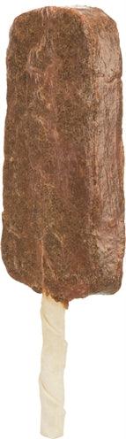 Mime o seu cão com este divertido picolé! Estes gelados caninos não precisam de ser congelados e são deliciosos para mastigar. São feitos com um palito de couro cru e cobertos com um saboroso frango. Isto cria uma verdadeira sensação de sabor, evita o tédio e ajuda a cuidar dos dentes. A fricção do couro cru com os dentes ajuda a reduzir as bactérias e a placa bacteriana, mantendo os dentes saudáveis. O snack perfeito para o seu cão: saudável, saboroso e original!
