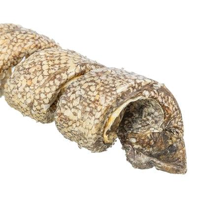 Trixie Denta Fun Curl Wokkel com Bacalhau é um petisco para cães feito com couro cru e bacalhau. Este snack não só oferece um saboroso agrado para o seu cão, como também contribui para a saúde dentária. Mastigar o snack ajuda a limpar os dentes e a reduzir a placa bacteriana e o tártaro. Este snack é ideal para satisfazer a necessidade natural de mastigação do seu cão, enquanto a combinação de couro cru e bacalhau cria um sabor irresistível.