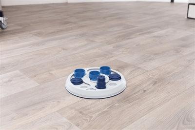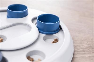 O jogo de tabuleiro inclui várias taças, tampas deslizantes e um cone que funciona como fecho. Ao esconder snacks ou ração debaixo das tampas ou nas taças, o seu cão precisa de se esforçar para ganhar a sua recompensa. O cone permite aumentar a dificuldade, mantendo o jogo desafiante à medida que o seu cão se torna mais habilidoso. Graças ao anel de borracha antiderrapante, o tabuleiro mantém-se firme no lugar, mesmo durante as brincadeiras animadas.