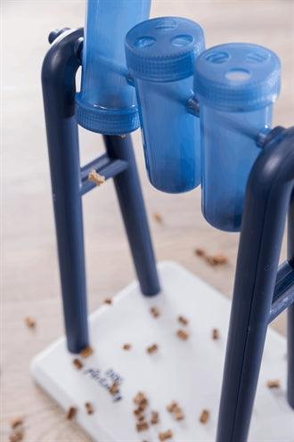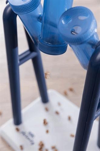 Cada um dos elementos giratórios possui duas tampas com orifícios de tamanhos diferentes, permitindo ajustar a dificuldade à medida que o seu cão progride. Isto garante que está sempre desafiado, o que não só previne o tédio, como também reduz o consumo de alimentos. Graças aos pés de borracha antiderrapantes, o brinquedo mantém-se firme no lugar, mesmo durante brincadeiras mais animadas. Além disso, as peças giratórias podem ser lavadas na máquina de lavar loiça, facilitando a limpeza após a utilização.