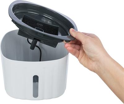 A fonte de água Trixie Flower, em plástico branco/cinza, com capacidade para 2 litros, possui indicador de nível, circulação de água e filtro para uma hidratação mais eficiente e refrescante. Os gatos costumam não beber água suficiente. Mantenha o seu gato hidratado oferecendo uma fonte de água como esta Trixie Flower. Feita de plástico, esta fonte garante uma melhor absorção de água graças ao filtro, que proporciona água mais fresca, e à circulação de água através da bomba integrada. Esta circulação proporciona também água mais oxigenada e naturalmente arrefecida. A fonte possui um indicador de nível para que possa sempre verificar se ainda há água suficiente. Acompanha também um adaptador USB e de alimentação. Os filtros de substituição são vendidos separadamente.