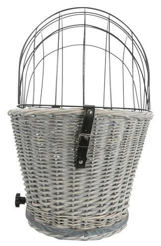Desfrute de cada passeio de bicicleta com o seu cão na garupa! O cesto de bicicleta Trixie com grade, em cinzento claro, é uma solução elegante e prática para quem quer levar o seu patudo com segurança e conforto. Esta espaçosa cesta é feita de vime entrançado e complementa na perfeição um aspeto natural e de verão – ideal para passeios no parque, na praia ou no terraço.