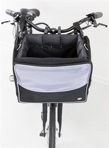 Cesto de guiador leve e compacto feito de poliéster resistente.