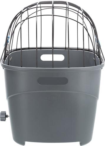 Leve o seu cão em segurança e conforto na garupa da sua bicicleta com este moderno cesto de plástico da Trixie, especialmente concebido para ser fixado no porta-bagagens traseiro. O cesto é ideal para cães pequenos que gostam de atividades ao ar livre, mas não podem ou não têm permissão para o acompanhar. Graças às suas características práticas e ao sistema de fixação inteligente, é uma solução fácil de utilizar para o dia-a-dia e para passeios de bicicleta mais longos. Pode encomendar este produto para fixar o cesto no guiador da sua bicicleta.
