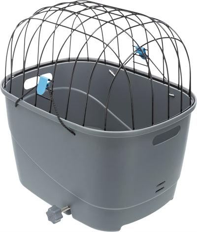 Esta robusta cesta de bicicleta é feita de plástico durável, proporcionando uma base estável e fácil de limpar. A cúpula de malha incluída, com proteção contra ruídos, mantém o seu cão seguro dentro do cesto e evita que salte inesperadamente. Quer segurança extra? Pode, opcionalmente, prender uma guia curta na parte interior do cesto.