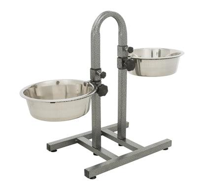 Este suporte para comedouros é ideal para quem gosta de ajustar a altura dos recipientes de comida e água dos seus animais de estimação. Com acabamento em verniz, este suporte em forma de H possui um recipiente para alimentos e outro para água em cada extremidade. A altura dos recipientes pode ser ajustada através dos práticos botões na parte superior e inferior do suporte. Para maior comodidade, os recipientes podem ser deslizados independentemente, permitindo diferentes alturas. Ao ajustar a altura de acordo com as necessidades do seu animal de estimação, ajuda-o a digerir melhor os alimentos.