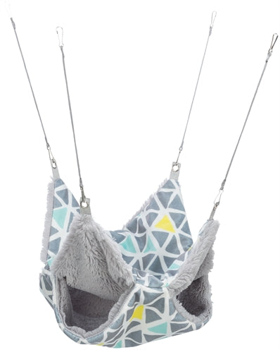 A rede de peluche Trixie Sunny de 2 níveis para hamsters grandes e degus (30x30 cm) é um local perfeito para o seu hamster grande ou degu dormir dentro da gaiola. Esta toca alegre será o local preferido do seu hamster ou degu para descansar. Pendure a rede na gaiola utilizando os ganchos num local onde o seu amiguinho possa alcançar facilmente a entrada. O estampado alegre e a pelúcia macia completam o visual.