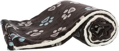 Esta manta incrivelmente macia oferece o máximo conforto para o seu cão, tanto em casa como em viagem. A manta é feita de dois tipos de peluche: um dos lados é de peluche curto, castanho-escuro, com um divertido padrão de patas, e o outro lado é de peluche comprido, cor creme, para uma suavidade extra. Isto torna a manta ideal para aconchegar-se, abraçar o seu cão ou como uma camada extra na cama ou no sofá.