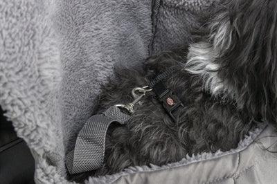 A mala possui alças de ombro largas e almofadadas e um cinto de cintura ajustável , permitindo uma distribuição uniforme do peso e um transporte confortável, mesmo durante caminhadas mais longas. A trela integrada mantém o seu cão seguro, impedindo-o de saltar para fora.