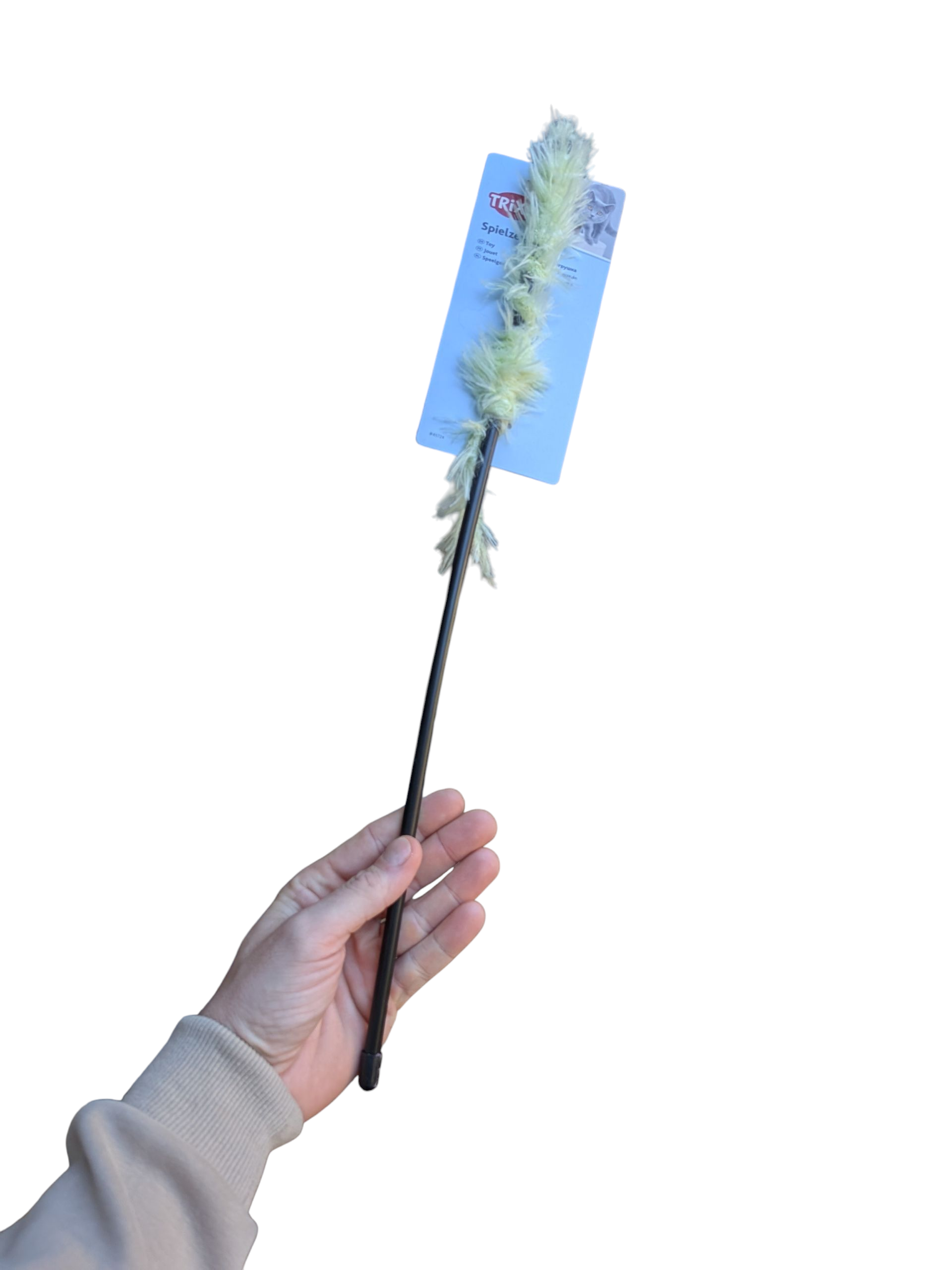 Faça movimentos inesperados para chamar a atenção do seu gato para o peluche e para as penas. O seu gato vai divertir-se durante horas com a varinha, mas o mais importante: vai divertir-se consigo!