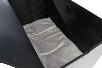 A casinha Trixie Kimy Cat House Light Grey, com as dimensões de 72 x 40 x 40 cm, é uma divertida opção para relaxar dentro de casa, com almofada e compartimento de arrumação. É o local privado ideal para o seu gato ou cão de pequeno porte! Este encantador Relax-Igloo é uma casinha retangular com entrada lateral. É feita de tecido entrançado com uma silhueta fofa de cão na lateral. O tejadilho do iglu é removível, revelando um compartimento de arrumação onde pode guardar os brinquedos favoritos do seu animal de estimação, por exemplo. Pode também retirar o compartimento, que é fixado com velcro, para facilitar o acesso ao seu gato ou cão por cima. A casinha vem com uma almofada reversível maravilhosamente confortável, com um estofamento macio. A almofada pode ser lavada na máquina a 40 graus Celsius.