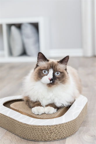 O arranhador de cartão Trixie com 2 bolas, com 36 x 36 x 5 cm, é um arranhador exclusivo com duas bolas no seu interior para maior diversão e atração. Assim, o seu gato terá mais probabilidades de arranhar o arranhador do que os seus móveis! O arranhador tem um formato triangular e um estampado divertido na parte superior. É feito de cartão enriquecido com catnip. No interior do arranhador, existe um trilho com duas bolas, com as quais o seu gato pode brincar, deslizando-as para a frente e para trás. Desta forma, o Trixie combina arranhar com brincar, para que o seu gato não se aborreça!