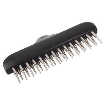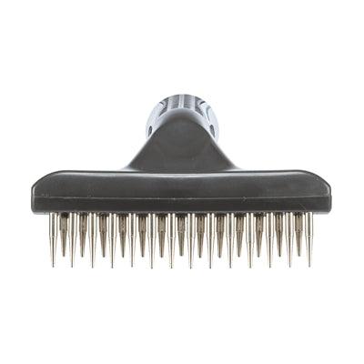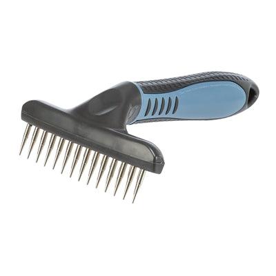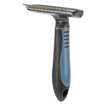 Este pente de metal, graças à sua dupla fileira de dentes, é adequado para um cuidado ainda mais intensivo do pelo interior dos cães de pelo comprido.