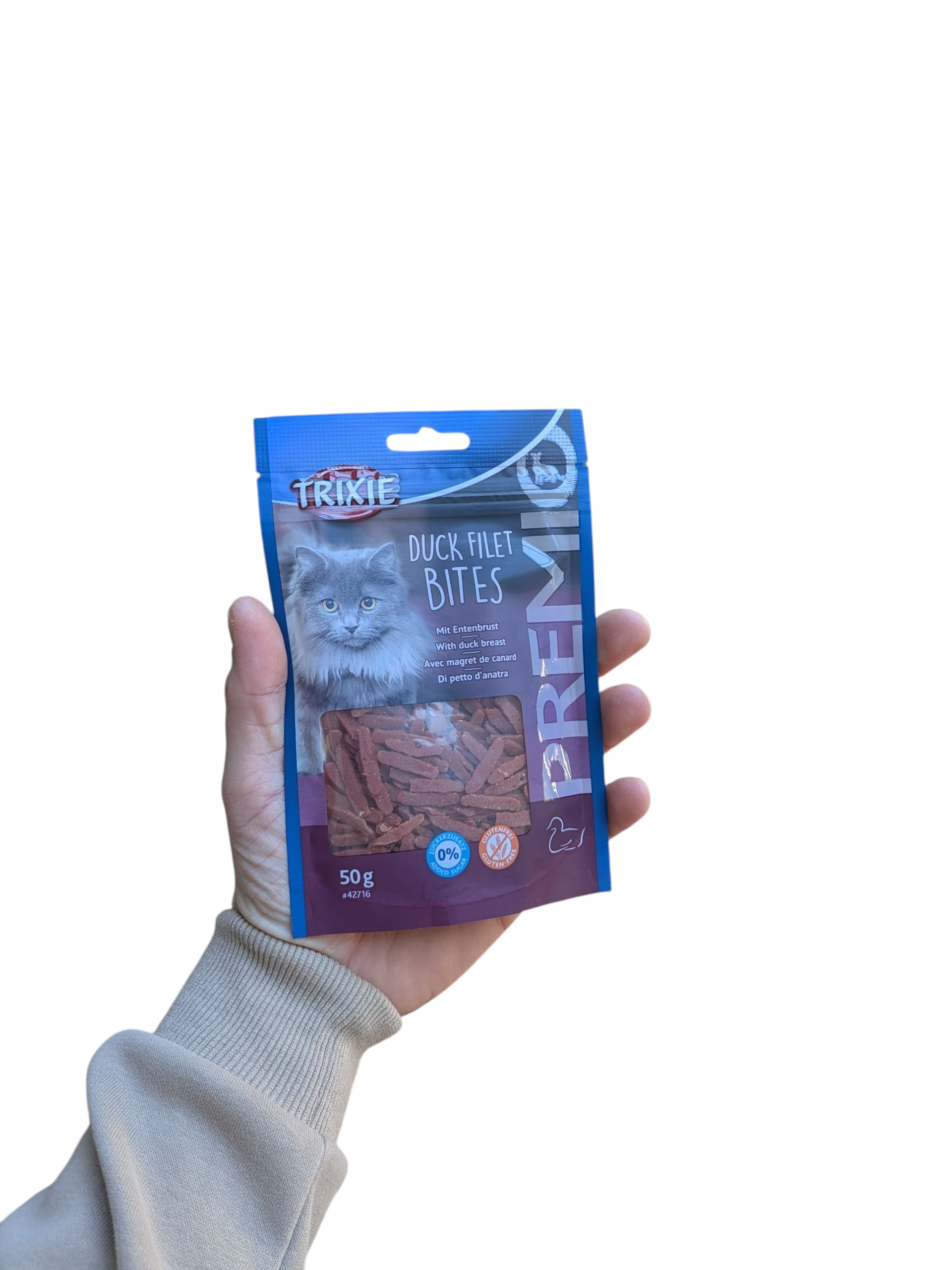 Os pedacinhos de filete de pato Trixie Premio de 50g (6 unidades) são snacks compactos de pato para gatos, feitos com 79% de carne e sem glúten e sem adição de açúcares. Qual o gato que não gosta de pato? Estes pedacinhos são a recompensa ou o petisco perfeito para o seu amiguinho! Estes snacks tenros são feitos com uns incríveis 79% de carne. São isentos de glúten e sem adição de açúcares, o que os torna um snack saudável.