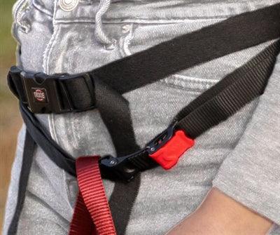 A bolsa possui um suporte para guia com função de aperto rápido, ideal para quando necessita de mudar de velocidade rapidamente durante o passeio. Graças ao sistema de trela integrado, a força de um cão a puxar é distribuída uniformemente pela sua cintura, proporcionando um maior equilíbrio e menos esforço.