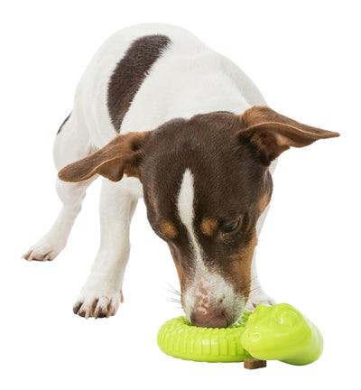A abertura estreita permite a utilização não só de ração seca ou snacks, mas também de pastas como o patê de fígado. Isto mantém o seu cão entretido com o brinquedo durante muito tempo e estimula os seus instintos naturais de busca e lambedura. Ideal para manter o seu cão mentalmente estimulado, mesmo quando não está por perto!