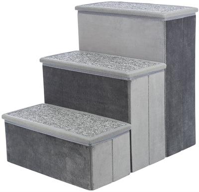 A escada Trixie com espaço de arrumação - Cinza (34x50x45 cm) é uma escada resistente, revestida a alcatifa, com um espaço de arrumação conveniente e degraus rebatíveis. Esta escada ajuda o seu cão ou gato a alcançar lugares mais altos, como sofás, camas ou cadeiras, sem esforço.