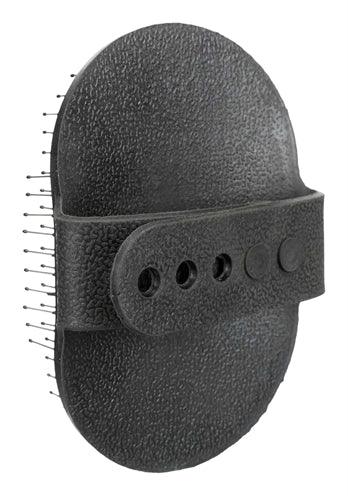 A escova de borracha Trixie Grooming Brush Rubber de 13 x 8 cm é uma escova de borracha natural para cães que ajuda a cuidar do pelo exterior e interior dos cães de pelo curto e duro. A escova é feita de borracha com pinos metálicos, permitindo alcançar a pelagem interior sem provocar dor durante a escovagem. Uma correia ajustável proporciona conforto durante a utilização.