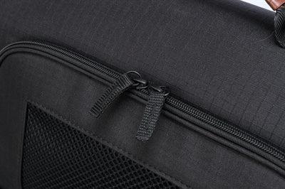 Graças ao design inteligente da bolsa, pode abri-la por vários lados: pela frente, pela lateral e pela parte superior. Isto permite-lhe ter sempre acesso ao seu animal de estimação sem ter de tirá-lo do seu espaço seguro. Isto é especialmente útil durante as inspeções alfandegárias ou quando o seu cão ou gato precisa de ser tranquilizado durante a viagem. A trela curta integrada no interior impede que o seu animal de estimação salte inesperadamente para fora da bolsa quando a abre.