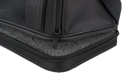 A bolsa Trixie Gate é feita de EVA resistente e dimensionalmente estável, combinado com poliéster de alta qualidade. Isto permite que a bolsa mantenha a sua forma, ofereça proteção adequada e, ainda assim, seja leve. Isto torna o transporte muito mais confortável, especialmente em viagens mais longas ou durante os transfers nos aeroportos. O fundo da bolsa é forrado com um material macio com aspeto de pele de carneiro, que não só proporciona conforto, como também retém o calor. Este painel inferior é também impermeável e amovível, facilitando a limpeza em caso de qualquer acidente durante a viagem.
