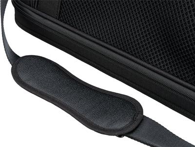 A bolsa possui uma alça superior resistente para facilitar o transporte. Inclui também uma alça de ombro removível e ajustável, permitindo-lhe escolher a forma mais confortável de a transportar. Exclusivamente, esta bolsa também pode ser acoplada a uma mala de rodas ou a uma mala de viagem – perfeita se estiver a viajar apenas com bagagem de mão e quiser manter as mãos livres durante o check-in ou as ligações.