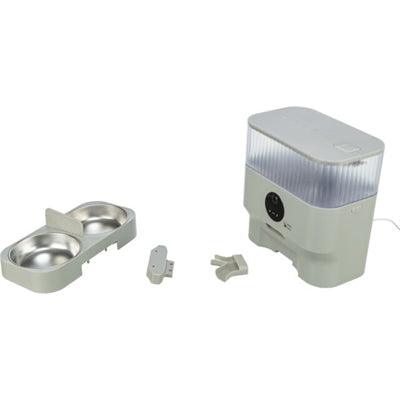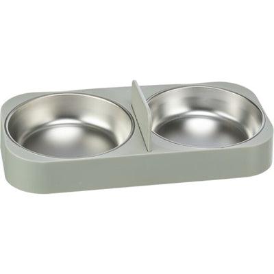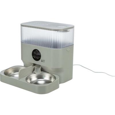 Taça dupla para alimentação/bebedouro Trixie para o alimentador inteligente TX-C, em plástico cinzento claro/aço inoxidável.