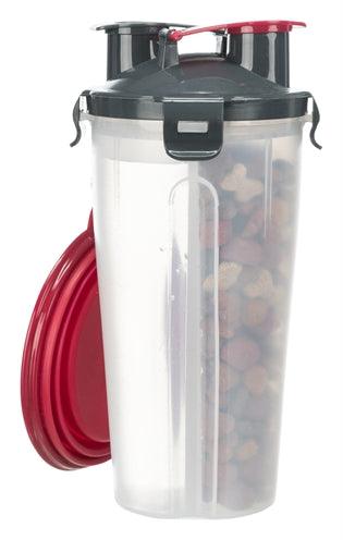 A garrafa Trixie para água e comida com tigela de viagem é uma solução prática para cães, ideal para utilizar em qualquer lugar. Esta garrafa inteligente tem dois compartimentos separados: um para a água e outro para a comida. Graças às duas aberturas independentes, pode escolher qual o compartimento a utilizar. A tigela de silicone dobrável incluída facilita a oferta de água ou comida ao seu cão a qualquer hora e em qualquer lugar. Perfeita para longas caminhadas, passeios ou férias.